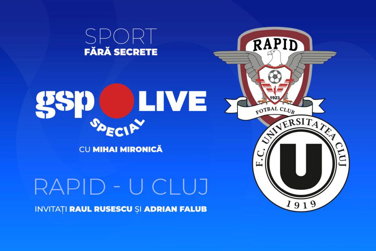 Aceștia vor prefața meciul dintre Rapid și U Cluj și vor primii cele mai noi informații de la reporterii GSP aflați în Giulești. Revin la pauza partidei cu primele concluzii, dar și la final pentru toate reacțiile serii.