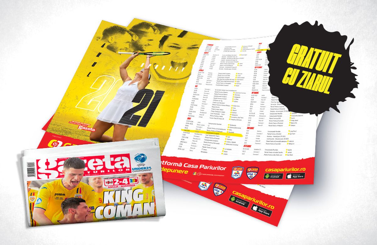 Gazeta Sporturilor a pregătit pentru cititorii săi un calendar al celor mai importante evenimente sportive, prevăzute să se desfășoare în 2021. Calendarul este prezentat sub forma unui afiș care va fi oferit gratuit tuturor celor care cumpără vineri ziarul Gazeta Sporturilor.