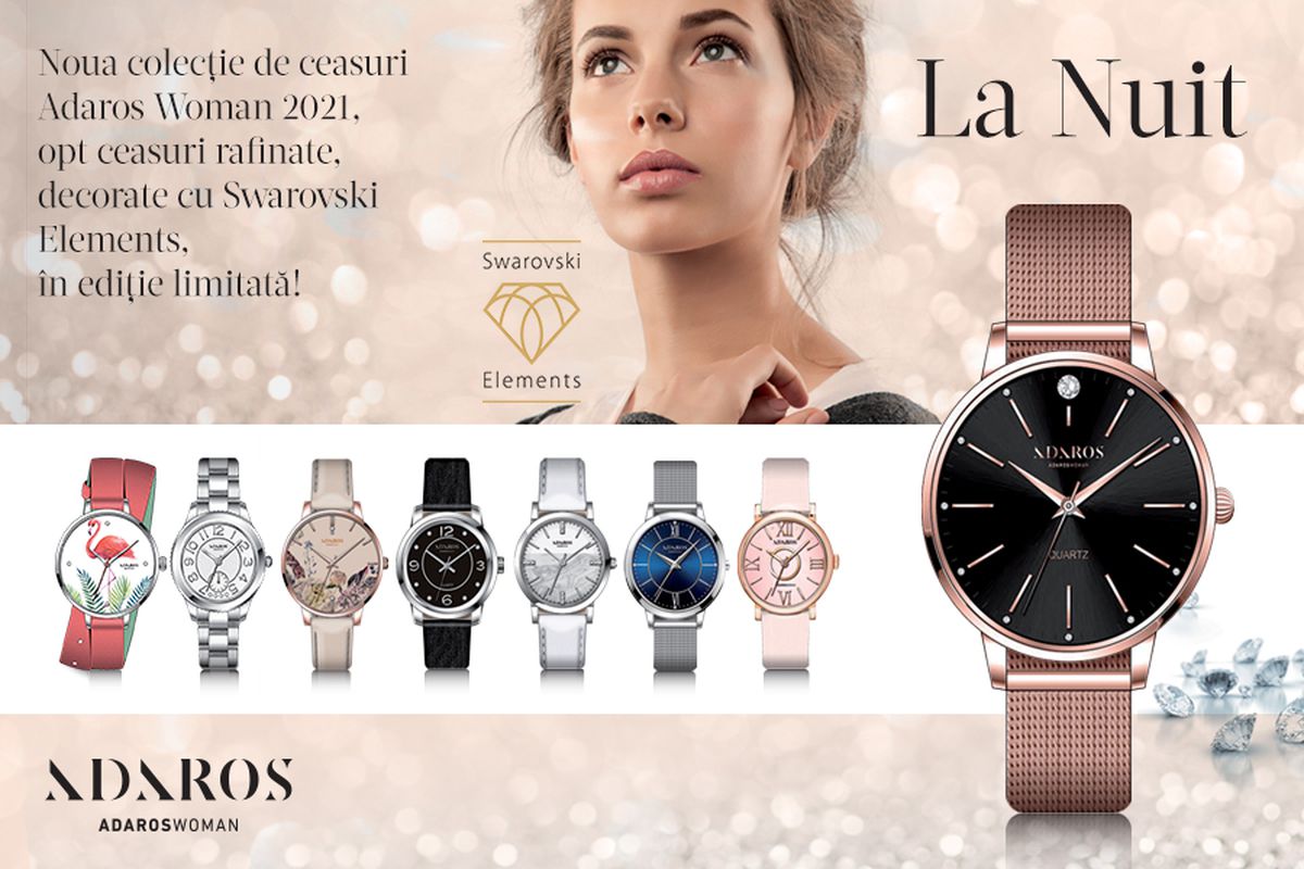 Gazeta Sporturilor lanseaza in Romania colectia de ceasuri de mana pentru femei AdarosWoman 2021! Cele 8 modele rafinate ale colecției sunt decorate cu Swarovski Elements® !