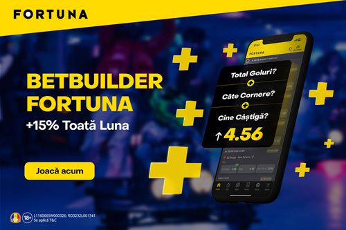La orice bilet câștigător făcut cu funcția Betbuilder, sporim câștigul cu 15%. Din partea noastra. Mai simplu. Ai pe bilet 1000 lei câștig, noi suplimentăm cu încă 150, adică îți intră în cont 1150 lei.