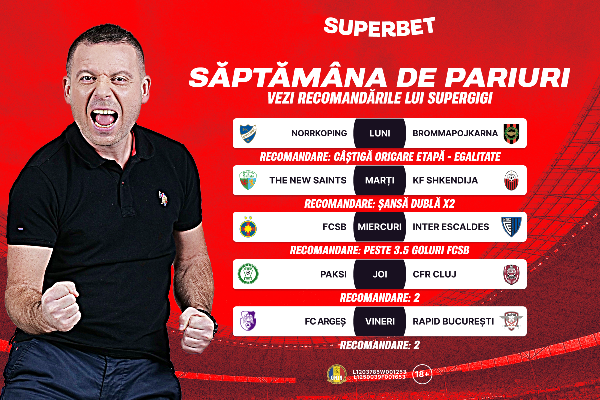 Începe o nouă săptămână dedicată fotbalului, marcată de începerea Superligii și a calificărilor pentru Liga Campionilor.