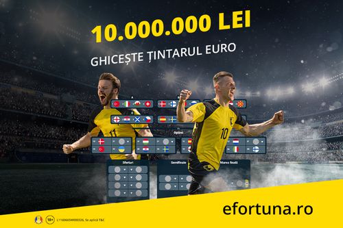 La marea finală ai și o misiune suplimentară: trebuie să indici scorul corect al timpului regulamentar. Ce se întâmplă mai departe, în prelungiri sau la penalty-uri, nu mai contează pentru tine! Dacă ai ghicit corect tot Țintarul, Fortuna te va premia cu o sumă record la acest turneu de neuitat. Premiul de 10 milioane de lei va fi împărțit de toți jucătorii care au intuit corect și integral Țintarul Euro 2020.