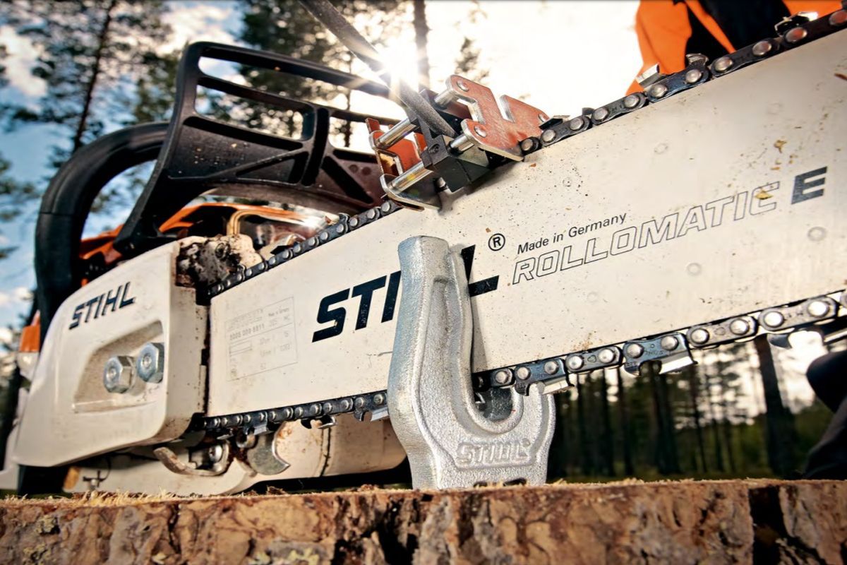 • un sistem eficient de frânare a lanțului, cu acțiune rapidă, pentru a spori siguranța și a diminua riscul de accidente;