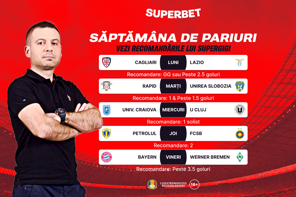 O nouă săptămână de pariuri începe în SuperSocial cu recomandările lui SuperGigi. Din Serie A și Bundesliga până în Superligă, unde etapa intermediară e în focus, vezi care sunt meciurile și pariurile alese de expertul Superbet pe biletul său.