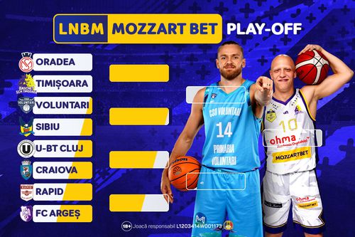 CSM CSU Oradea – SCM Mozzart Bet Timișoara, U BT Cluj-Napoca – SCM Craiova, CS Rapid – FC Argeș și CSO Voluntari – BC CSU Sibiu sunt sferturile de finală din LNBM Mozzart Bet. Seriile din sferturi și semifinale se vor desfășura pe sistemul „cel mai bun din 5 partide”, în timp ce marea finală se va disputa pe sistem “cel mai bun din 7 meciuri”.