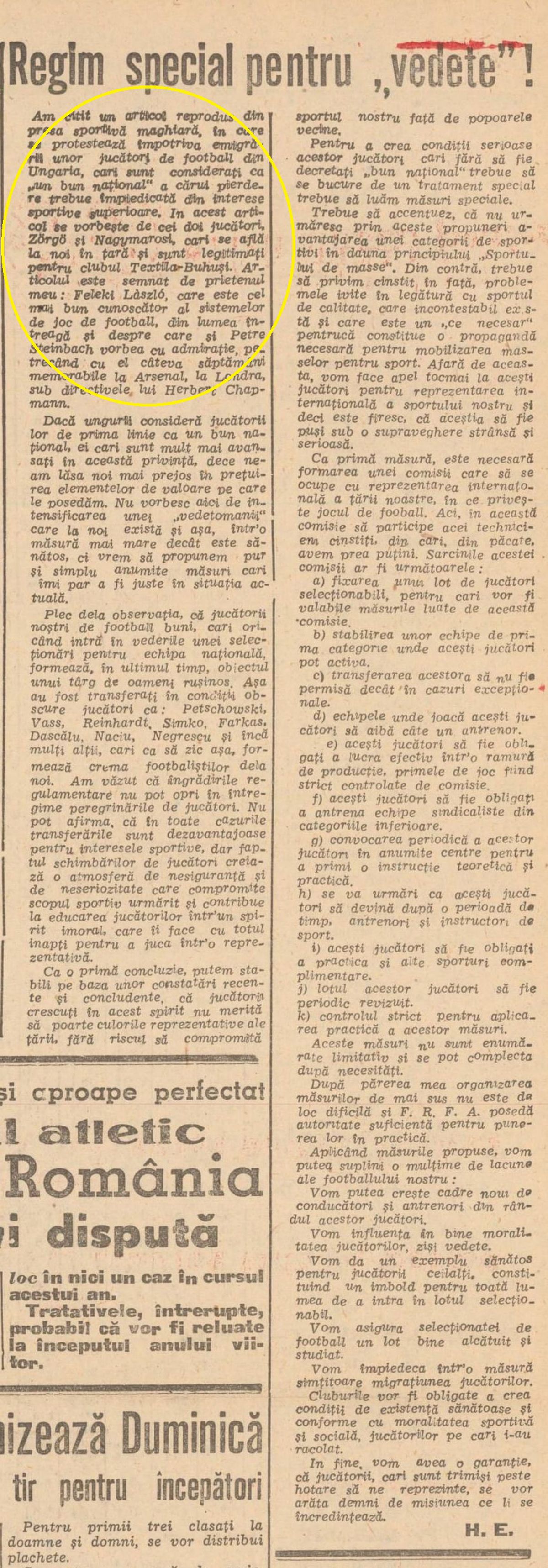 : Venirea celor doi maghiari la Textila Buhuși a fost întoarsă pe toate fețele FOTO: Captură „Sportul Popular”