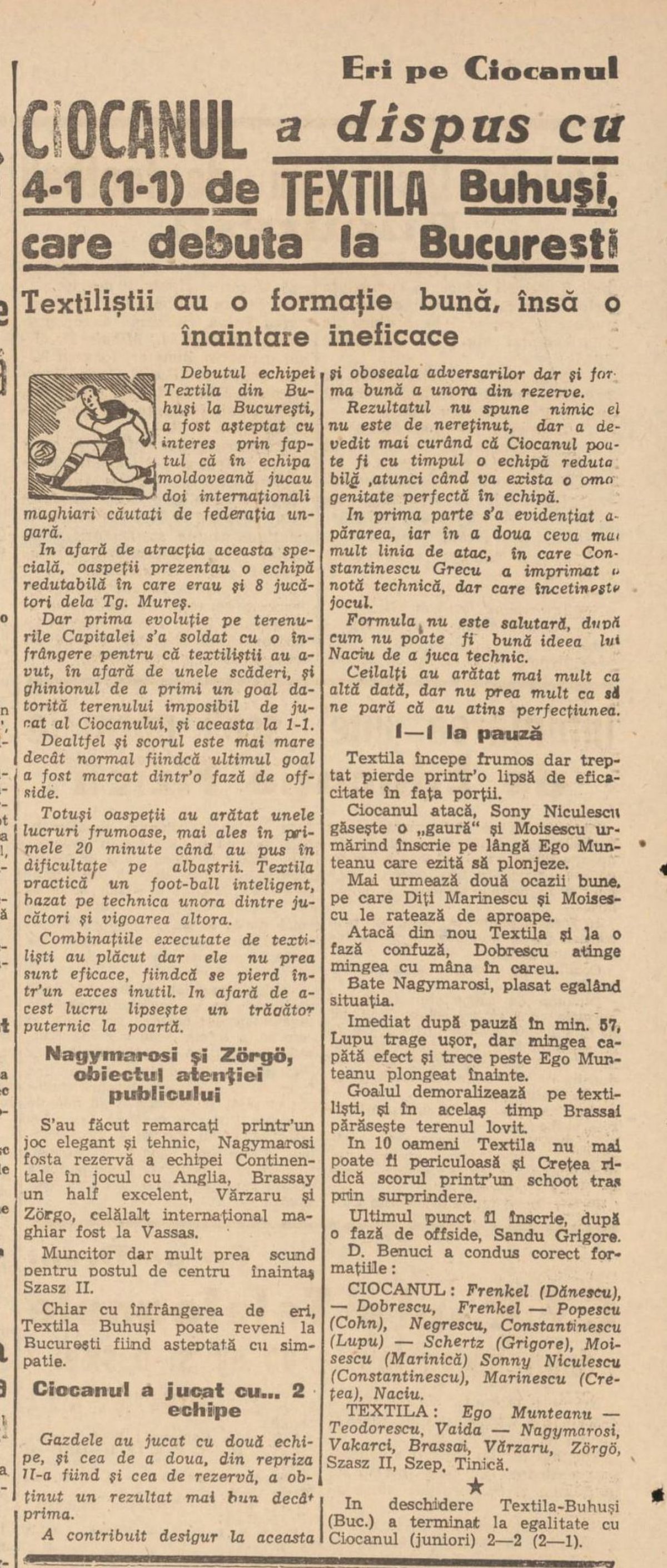 : Ciocanul i-a „ciocănit” zdravăn pe cei de la Textila Buhuși FOTO: Captură „Sportul Popular”
