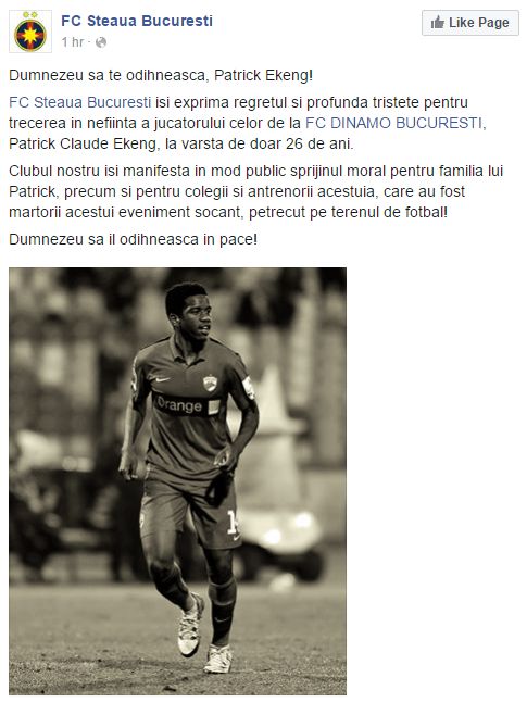 "Nu există cuvinte pentru a ne exprima regretul pentru decesul lui Patrick Ekeng. Deplângem pierderea ta. Nu te vom uita niciodată, prietene!", scrie pe contul oficial al Cordobei.