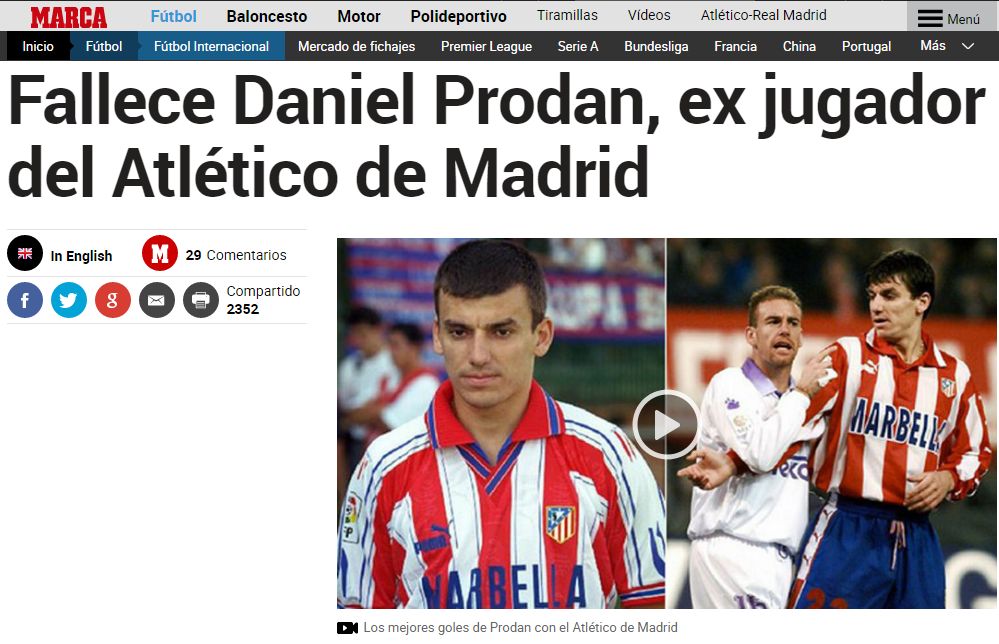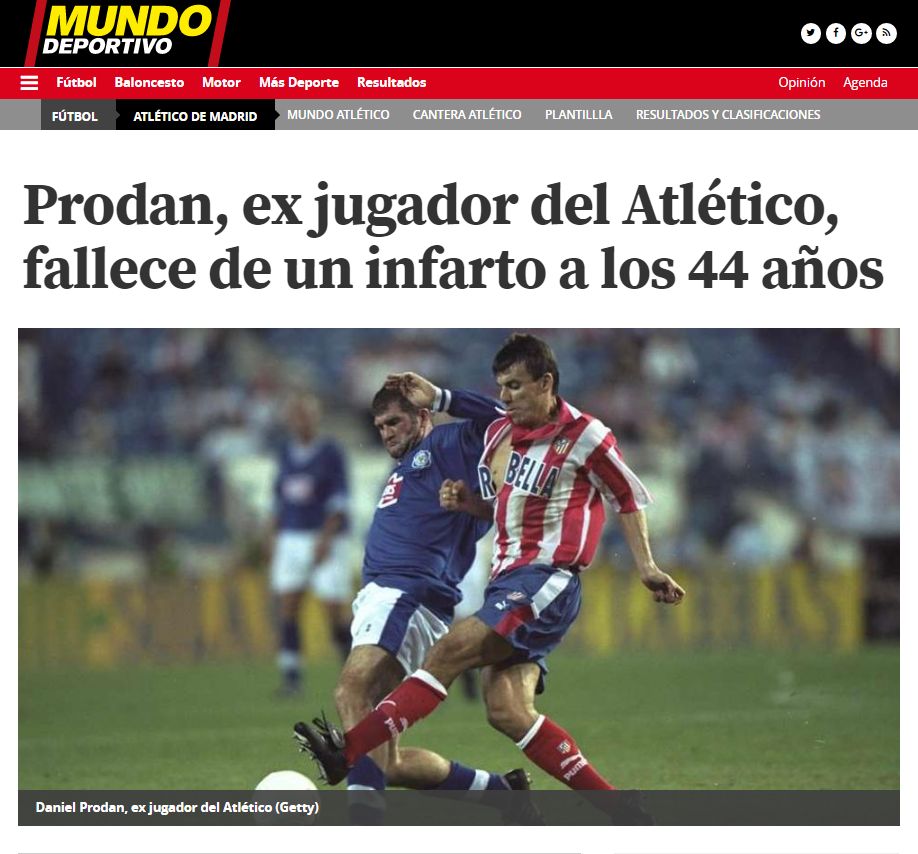 Daniel Prodan a evoluat timp de un și jumătate pentru Atletico Madrid, iar presa din Spania a relatat despre decesul fostului fotbalist român.