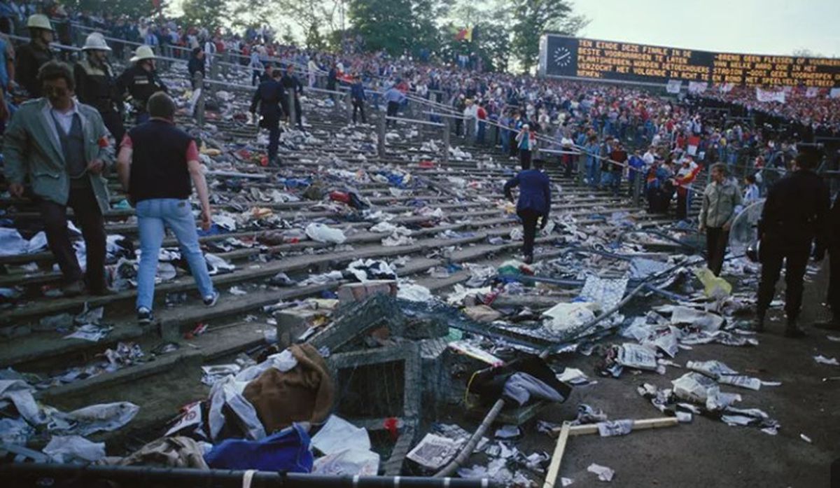 : Imaginile Dezastrului Heysel produs pe 29 mai 1985 la Bruxelles, la finala Cupei Campionilor Europeni, Juventus - Liverpool / Foto: Facebook