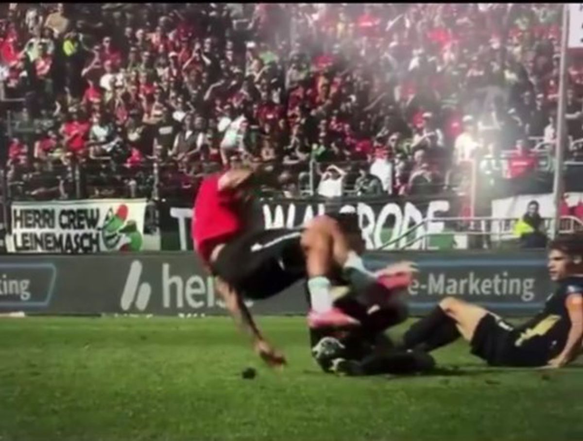 : Jessic Ngankam (Hannover) a suferit o dublă fractură de tibie și peroneu în meciul cu Elversberg din 2. Bundesliga / Foto: Captură TV
