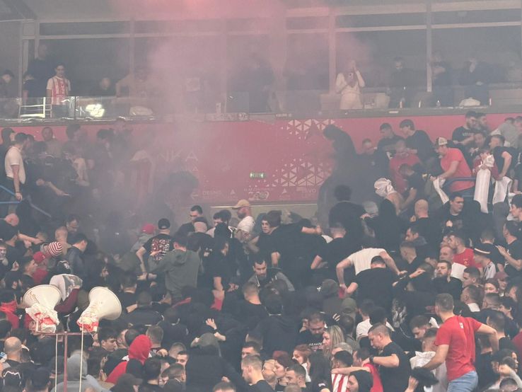 O bătaie între suporteri a avut loc cu câteva minute înainte de începerea derby-ului dintre Steaua Roșie Belgrad și Partizan, din etapa a 35-a a Euroligii.