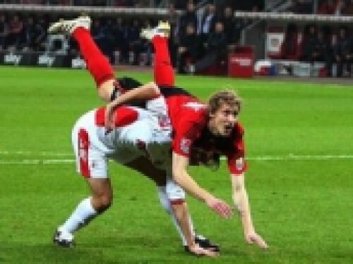Bayer s-a împiedicat pe teren propriu de echipa demolată de Stuttgart în urmă cu o săptămînă (5-1), cu cele 4 goluri semnate de Cacau. Schalke stă şi ea la pîndă, mai ales că prin succesul de vineri seară, 2-1 cu Dortmund, s-a apropiat la două puncte de Bayer.