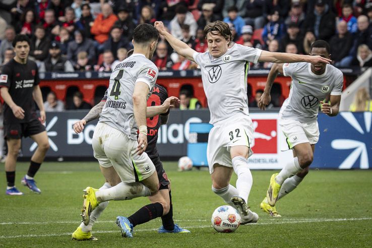 Cincisprezece minute mai târziu, Leverkusen a primit o lovitură de pedeapsă pentru un fault comis de Joakim Maehle în careu, iar de la punctul cu var, Alejandro Grimaldo a egalat. Însă, la doar un minut distanță, Wolfsburg a preluat din nou conducerea, chiar prin golul lui Maehle. Danezul a înscris cu un șut superb de la distanță. 2-1 pentru „lupi”.