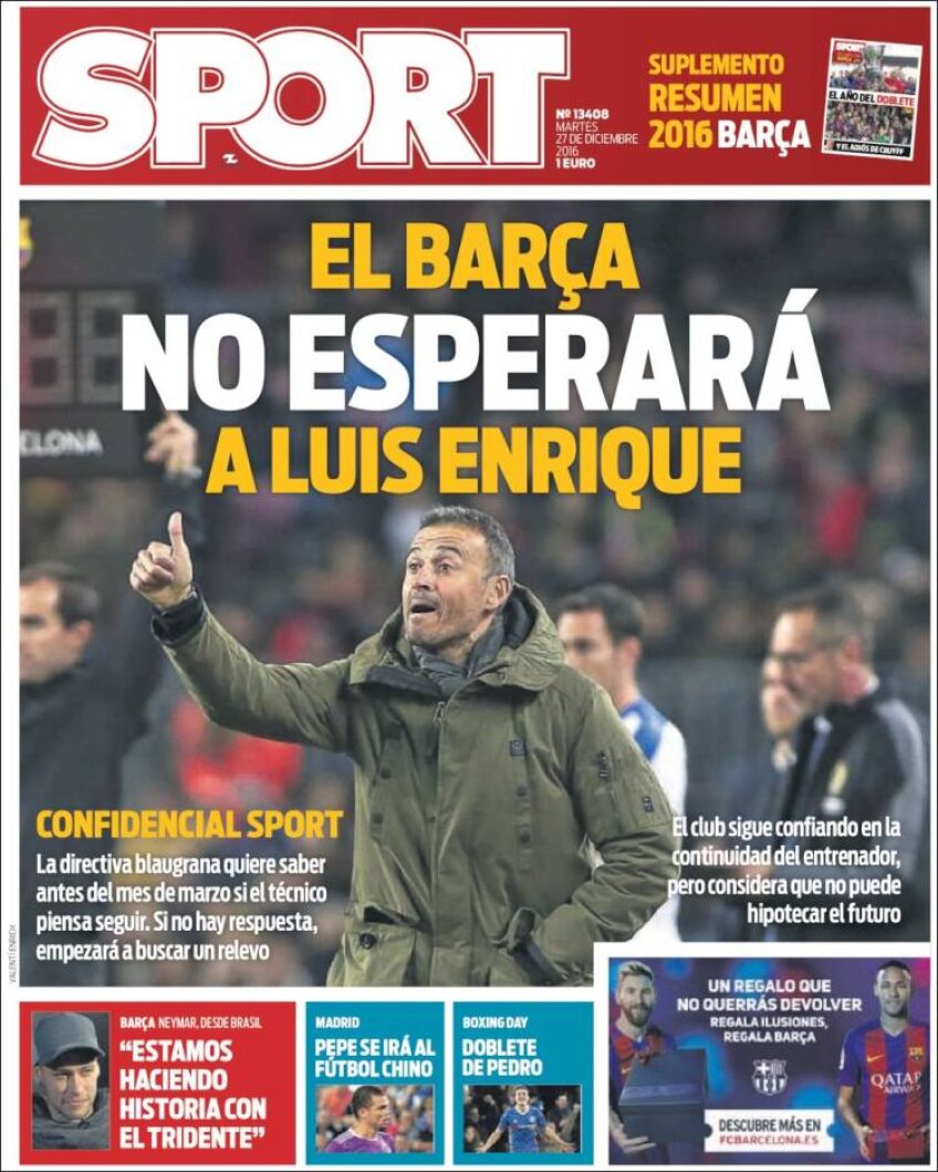 Ce scriu azi ziarele de sport din lume (27 decembrie 2016)