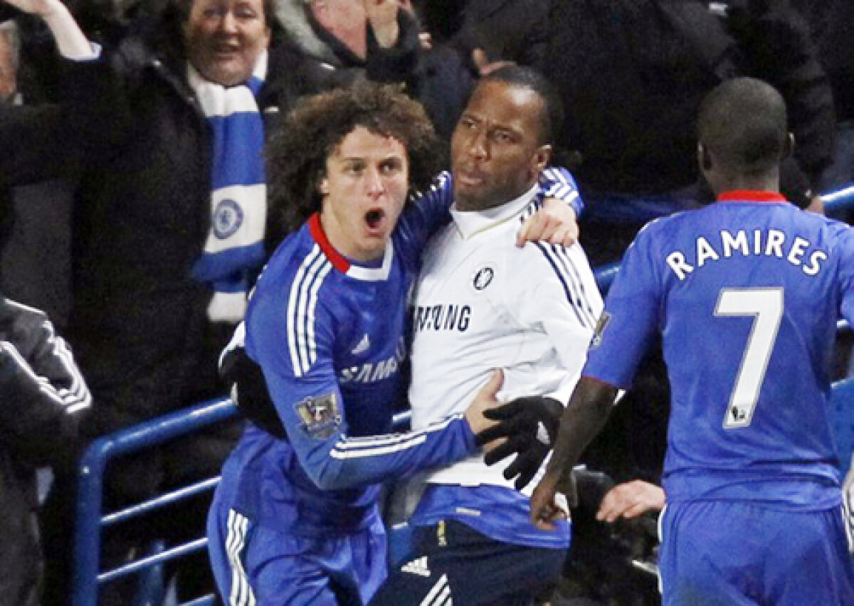 Derby-ul dintre Chelsea şi Manchester United s-a încheiat cu victoria londonezilor, scor 2-1. Golurile au fost reuşite de David Luiz (54), Frank Lampard (79, penalty), respectiv Wayne Rooney (30).