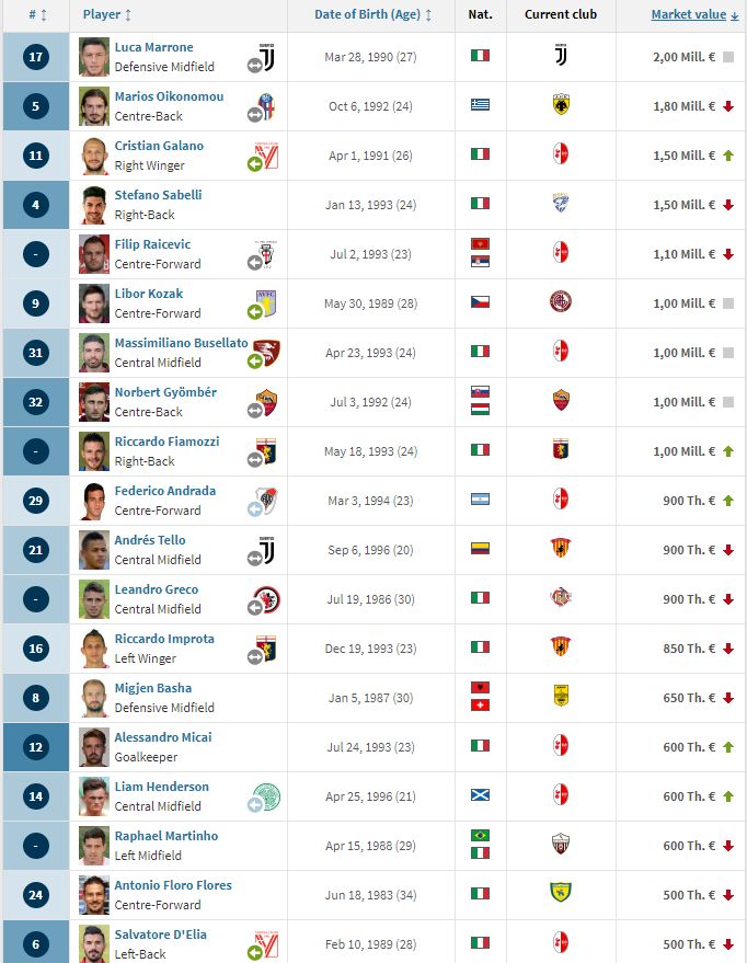 Cei mai valoroși jucători de la Cesena