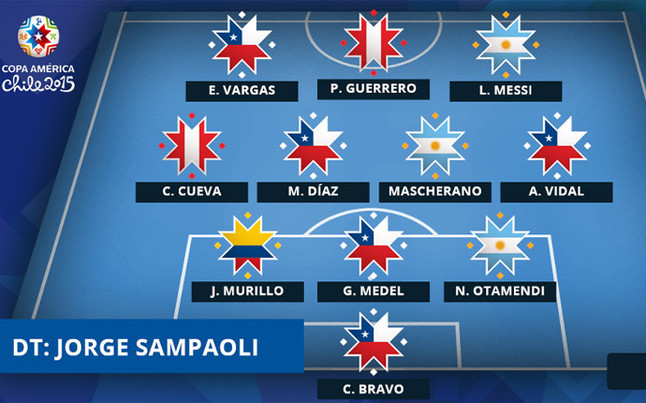 Echipa ideală: Bravo (Chile) - Otamendi (Argentina), Medel (Chile), Murillo (Columbia) - Vidal (Chile), Mascherano (Argentina), Diaz (Chile), Cueva (Peru) - Messi (Argentina), Guerrero (Peru), Vargas (Chile)