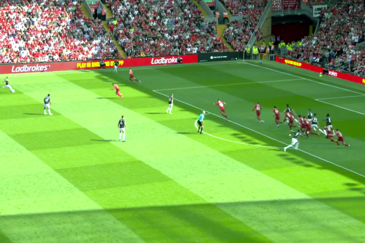 Mikel Merino a executat o lovitură liberă din lateral, de la mai bine de 35 de metri, direct în careul advers, moment în care toți jucătorii nord-londonezilor au fost surprinși de trupa de pe Merseyside în ofsaid. Au stat intenționat inerți, așteptându-i pe „cormorani” să facă pasul înainte.