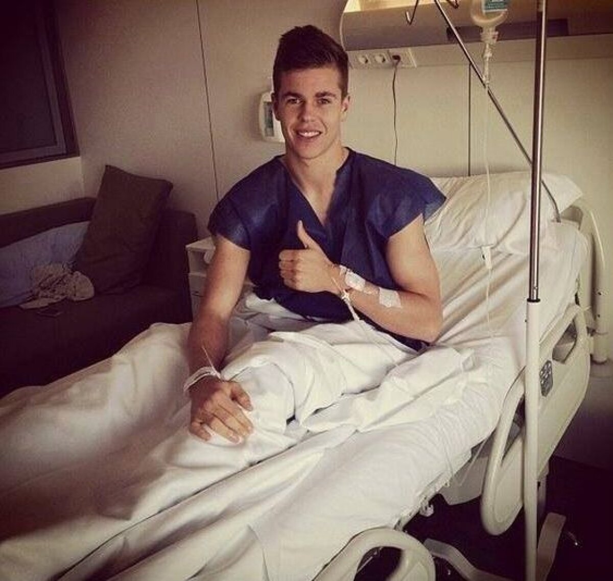 "Abia m-am operat, dar continuu să zîmbesc şi voi reveni. Nu renunţa niciodată şi fii puternic!" a fost mesajul lui Van Ginkel, însoţit de poză, pe un site de socializare.