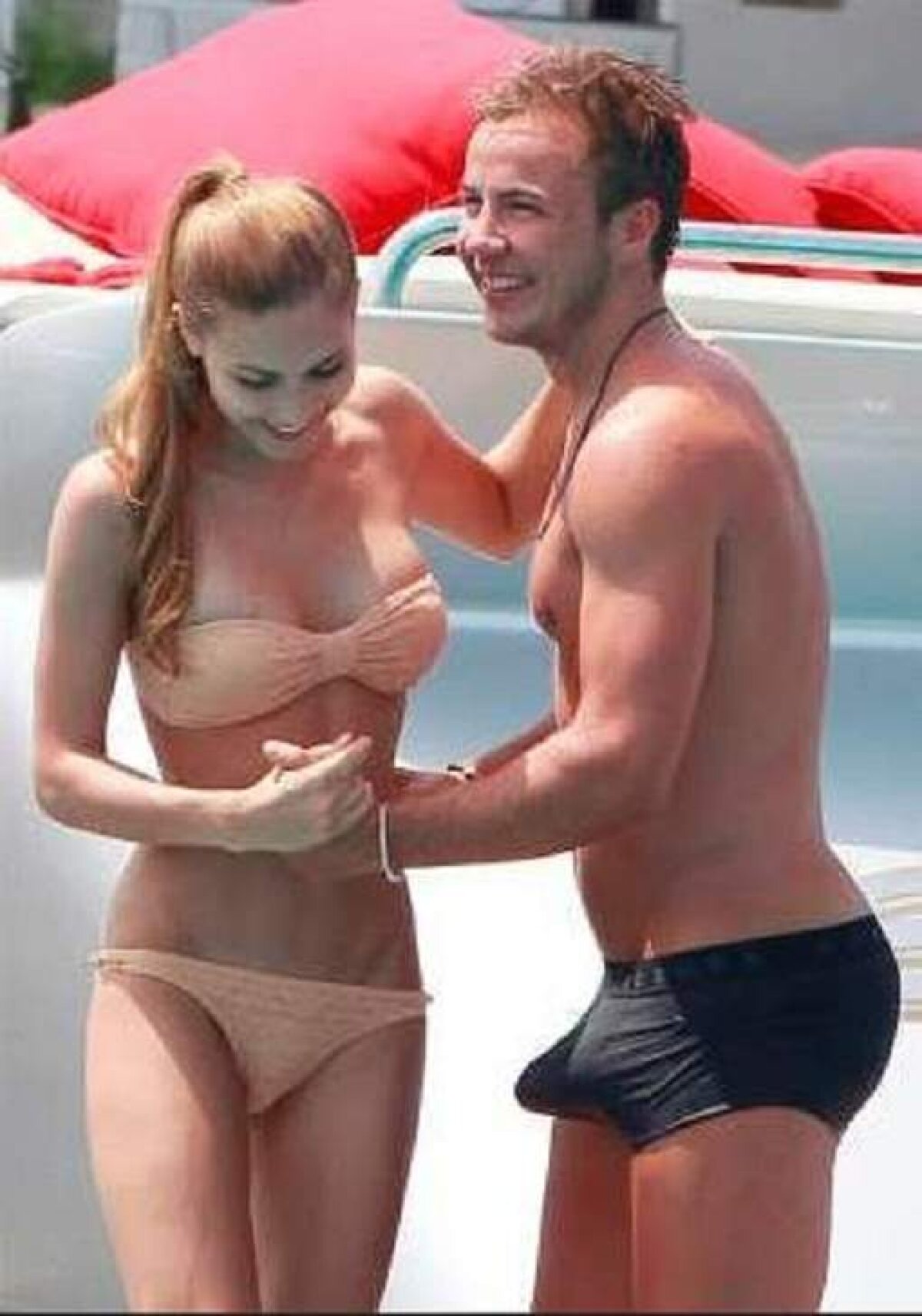 Tînăra l-a impresionat repede. Dovadă că mijlocaşul de 20 de ani al Borussiei Dortmund a fost surprins la piscină, în slip, cu o erecţie subită care l-a pus într-o situaţie stînjenitoare. Cei doi au replicat glumelor celor din jur cu zîmbete.