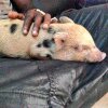 Se numeste mini pig si e un purcelus "prelucrat" in laborator ca sa ramana mic! E unul dintre cele mai dragute animale de companie. E foarte simpatic, dar si costisitor.