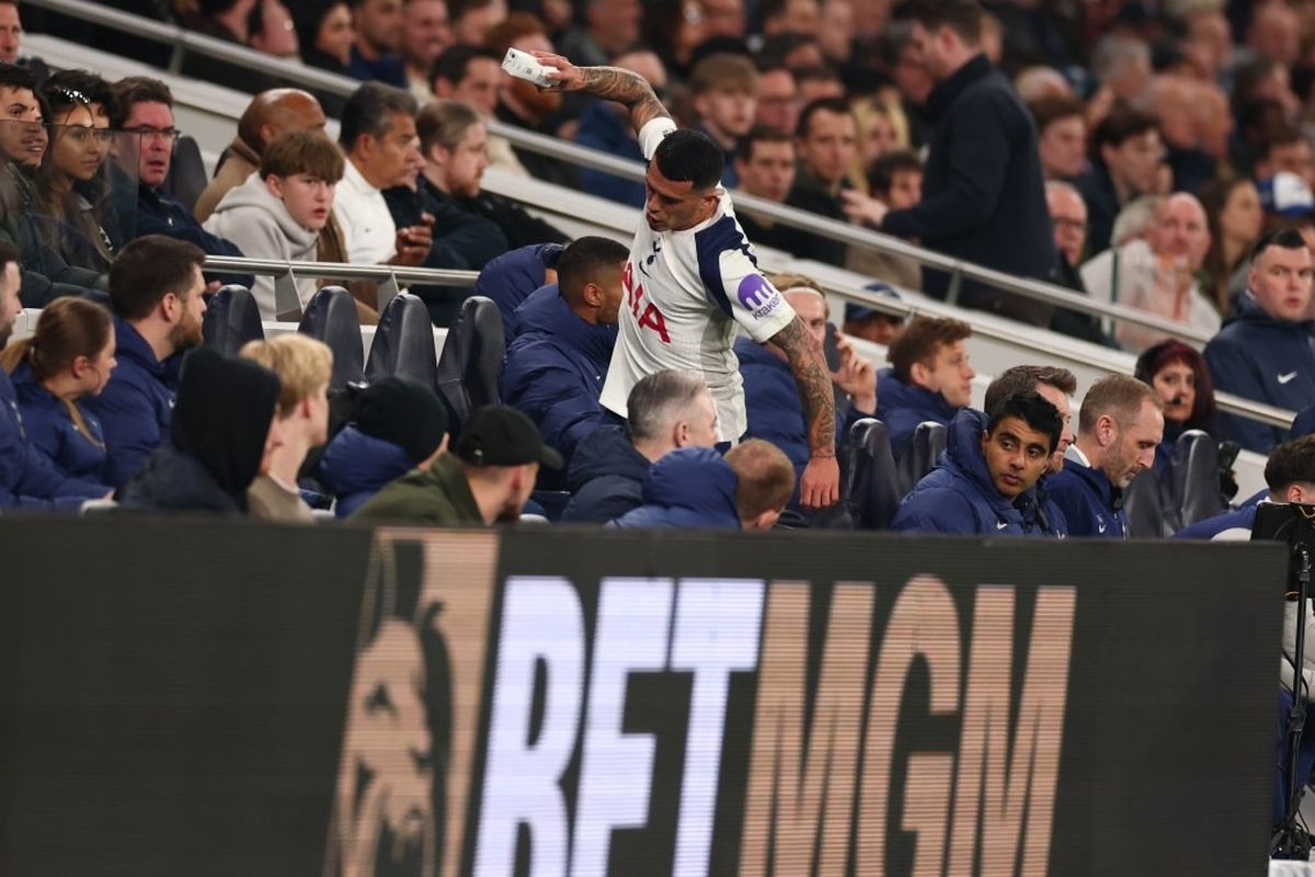 Și n-a fost totul. În minutul 73, când Igor Tudor l-a înlocuit cu Xavi Simons, căpitanul Pedro Porro a făcut o criză de nervi. A lovit cu piciorul unul dintre scaunele de la banca de rezerve, apoi a luat o sticlă și a dat cu ea de pământ.