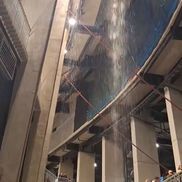 Suporterii prezenți pe stadion au fost nevoiți să se refugieze în zone uscate, în timp ce apa picura fără oprire în interiorul tribunelor, reamintind că un gigant în valoare de aproape două miliarde de euro (dacă se iau în considerare toate costurile și finanțările suplimentare) are încă deficiențe tehnice grave.