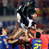 vai de capul vostru....ati ajuns sa pupati in fund pramatia aia ordinara care a facut fotbalul praf....doar ca mai mirositi si voi locul 1 din cand in cand. Realul era un club cu demnitate si personalitate o data, pana sa se puna sub talpa a doi portughezi pentru ca sunt atat de disperati sa mai castige si ei ceva. Murinho e un om....atat...are niste calitati exceptionale....dar in multe alte aspecte este foarte limitat...sa nu mai vorbesc de deficientele grave de caracter si comportament, plus faptul ca sufera de el