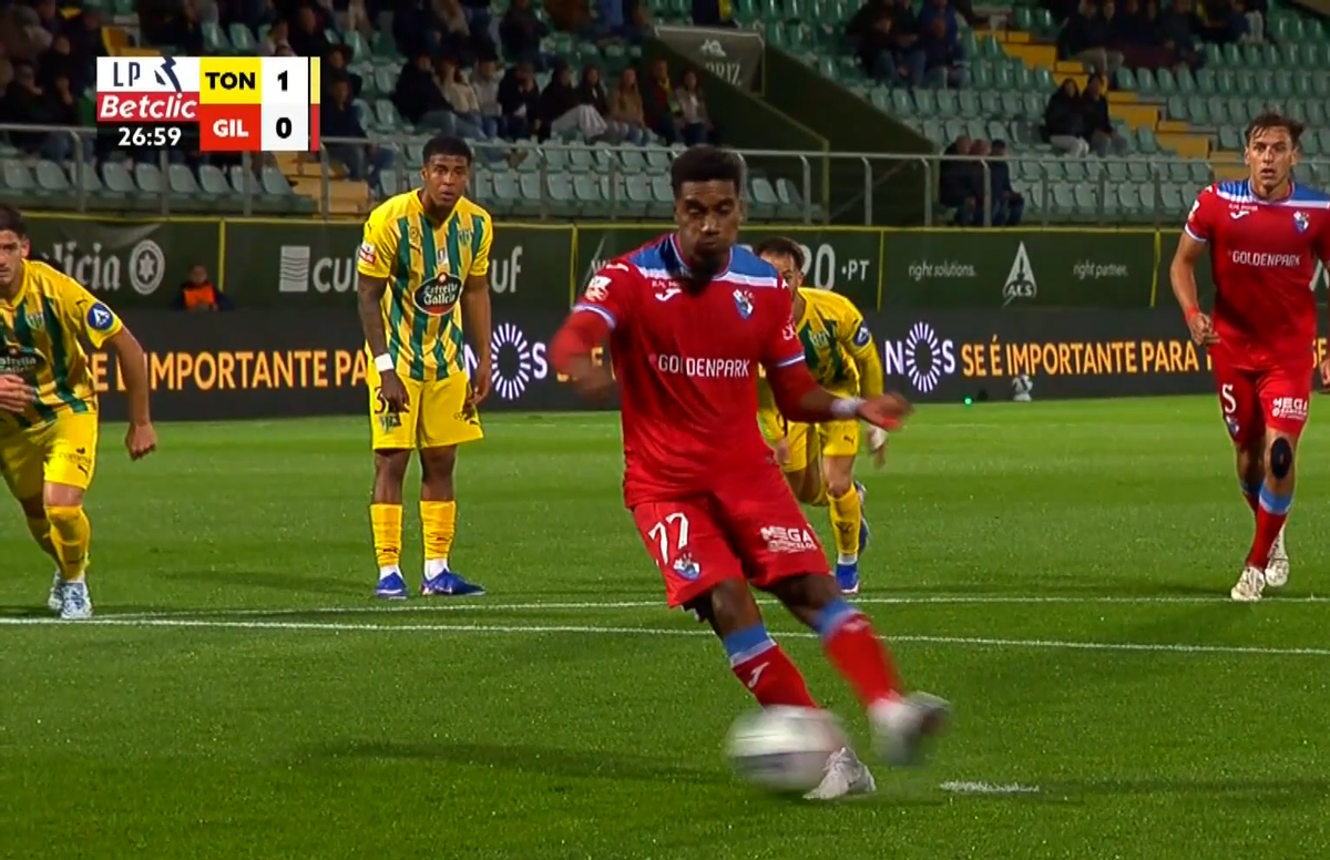 : Un jucător din prima ligă a Portugaliei a atins mingea de două ori la executarea loviturii de la 11 metri, iar arbitrul a decis repetarea acestuia / foto: abola.pt.