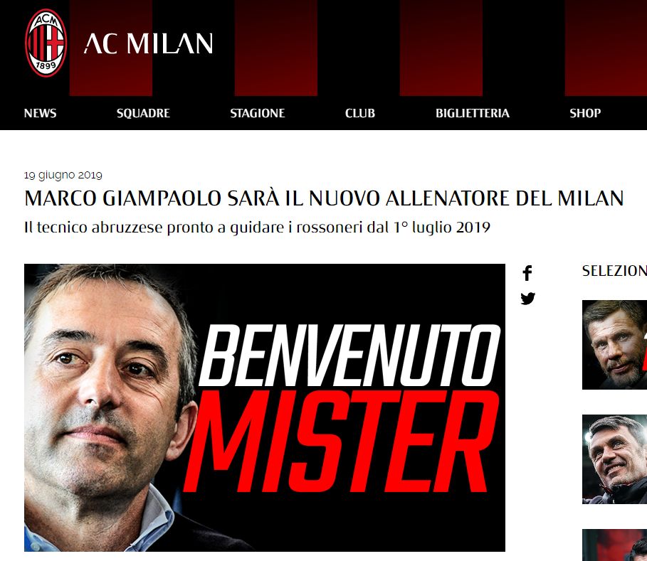 Sezonul bun avut la Sampdoria, locul 9 în Serie A și a cincea ofensivă a campionatului, l-a făcut pe Giampaolo unul dintre cei mai curtați antrenori din Peninsulă. Tehnicianul a ales AC Milan și are un mare obiectiv pentru sezonul următor, calificarea în grupele Ligii Campionilor.