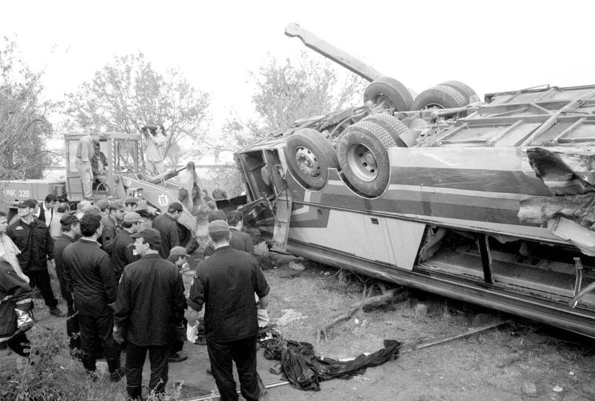 După remiza lui PAOK cu Panathinaikos, autocarele cu fanii și-au început călătoria de întoarcere. Conform mărturiilor, cu puțin timp înainte de accidentul din Velestino, fiul în vârstă de 19 ani al proprietarului a preluat conducerea autobuzului, înlocuindu-l pe șoferul obișnuit. Cu doi kilometri înainte de punctul de taxare din Tempi, autobuzul a încercat să depășească, a intrat în direcția opusă și s-a ciocnit cu un camion care se deplasa spre Larissa. Vehiculul s-a răsturnat și a ajuns într-un șanț, ucigând șase persoane și rănind 33 de pasageri, potrivit tanea.gr.