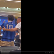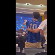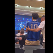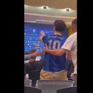 Îmbrăcat cu un tricou al naționalei Argentinei cu numărul 10 și textul „La mano de Dios” (n.r. - Mâna lui Dumnezeu, golul lui Diego Maradona de la CM 1986 cu Anglia)”, a spus câteva cuvinte și a fost dat afară imediat din conferința de presă.