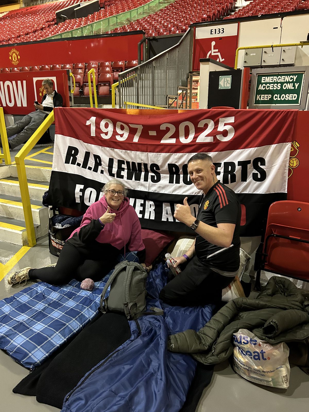 : Suporterii lui Manchester United la evenimentul Stadium Sleep Out / foto: X @MU_Foundation