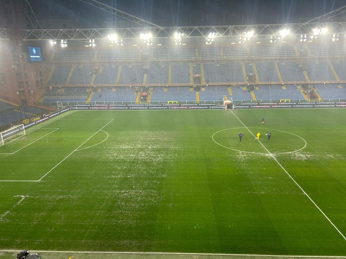 : Terenul de pe Luigi Ferraris, serios afectat de ploaia torențială, înaintea partidei Genoa - Monza / Foto: buoncalcioatutti.it