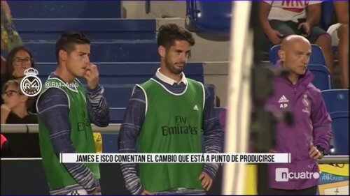 Cotidianul spaniol Sport a publicat un video în care doi dintre fotbaliştii madrilenilor aflaţi la încălzire, Isco şi James, îşi dau seama că Lucas Vasquez îi va lua locul portughezului. Cei doi au început să vorbească pe această temă, arâtându-se destul de surprinşi de decizia lui Zinedine Zidane.