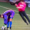 „Portarul degajase mingea în tribună după ce a fost agresat. ” Voi v-ați uitat măcar la filmuleț? La voi terenul este tribună și invers? =))
