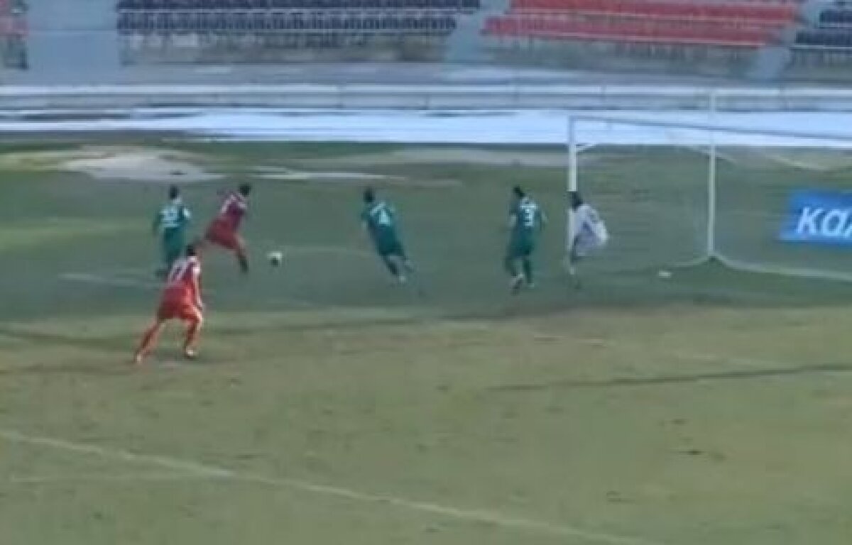 În liga a 2-a din Grecia, Veria FC (echipament roş-albastru) şi PAE Agrotikos Asteras (în verde) au oferit o fază greu de explicat pentru orice specialist de fotbal.