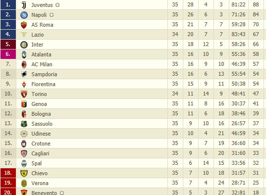 1. Juventus 88p (+59)