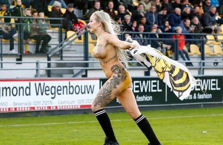 Momentul a avut loc în timpul meciului de acasă disputat cu Amsterdamsche FC. Blonda angajată de ei a intrat goală pe teren, fluturând un steag și fugind de mama focului.