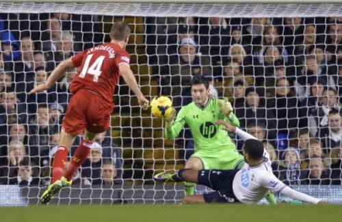 Şi mai ales evoluţia penibilă a apărării! Primul gol a fost un cadou făcut de Dawson, care a pierdut balonul în marginea careului, iar Suarez a profitat şi a deschis scorul. Coutinho a ţintit apoi "transversala", portarul Lloris a greşit şi el, însă a fost iertat de Suarez. Pînă-n minutul 40, cînd Liverpool şi-a dublat avantajul: Henderson, 0-2.