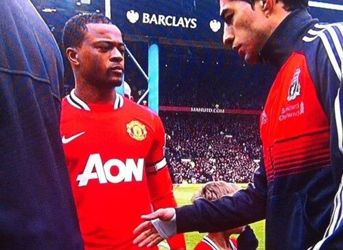 Clubul Liverpool a dezaprobat comportamentul jucătorului într-un comunicat semnat de directorul general, Ian Ayre. "Sîntem extrem de dezamăgiţi că Luis Suarez nu a dat mâna cu Patrice Evra înainte de meciul de ieri. Jucătorul nostru ne-a spus că va da mîna, dar a ales să nu facă acest lucru. Ne-a înşelat şi nu a dat mîna cu Patrice Evra.