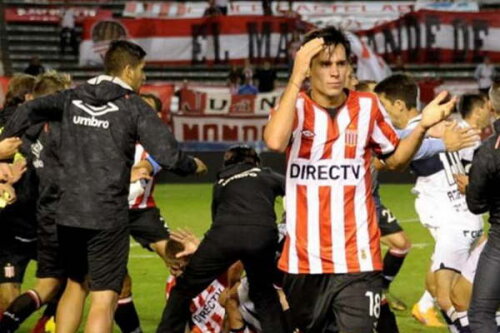 Totul a pornit din cauza lui Alvaro Pereira, fostul jucător al celor de la CFR Cluj. Acesta l-a lovit dur pe Facundo Orjea, iar fotbalistul celor de la Gimnastia a părăsit terenul cu ambulanța.