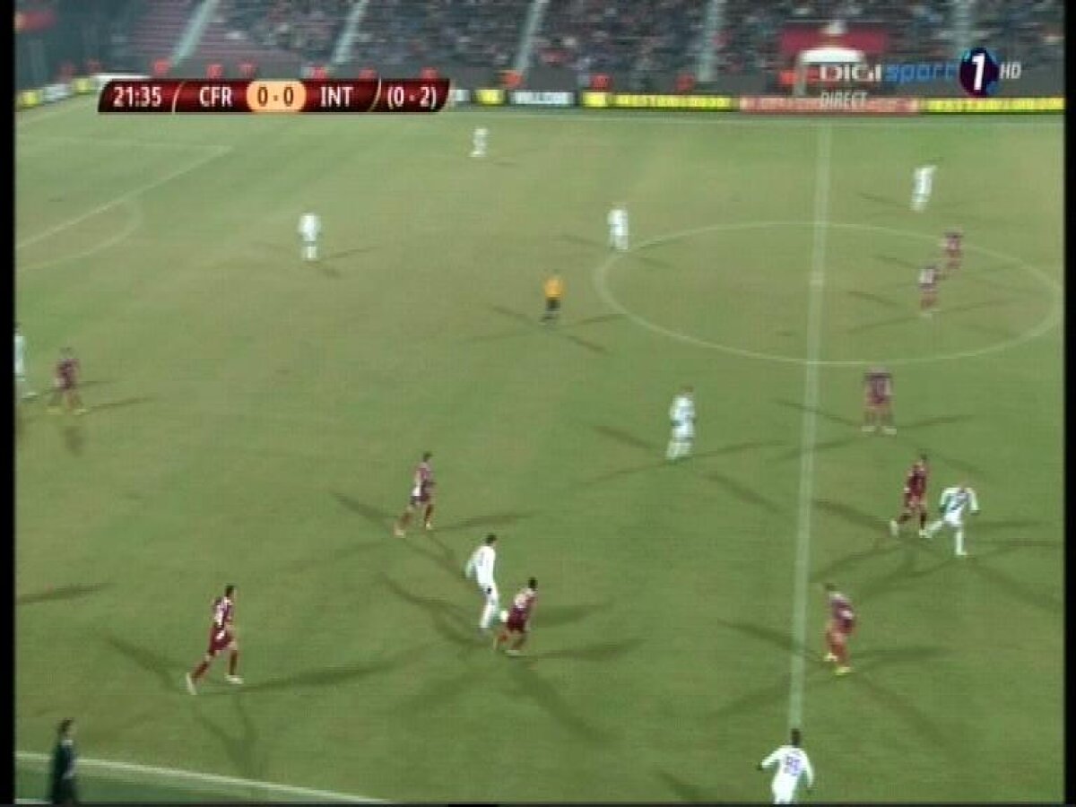 Clujenii au început mai ofensiv returul din această seară şi chiar au avut o ocazie mare de a deschide scorul. Speranţele ardelenilor s-au destrămat însă la mijlocul reprizei cînd Guarin a îndeplinit o simplă formalitate după o pasă primită de la Palacio.