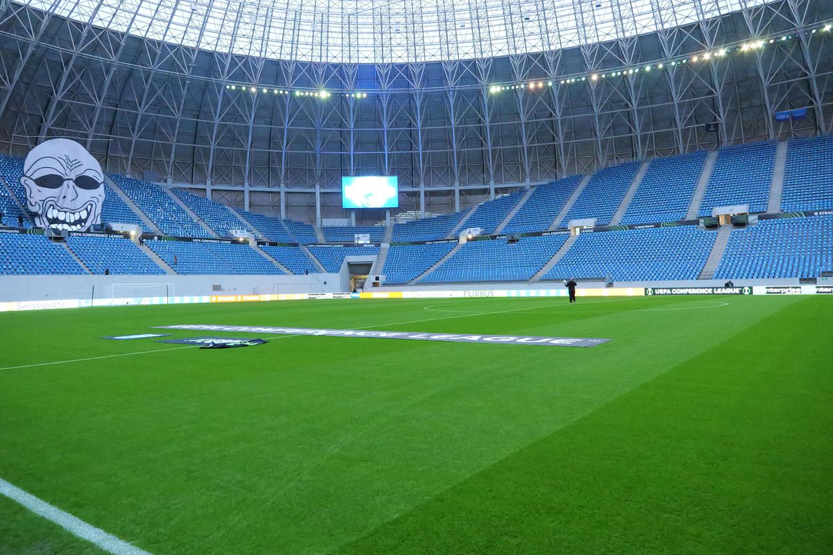 Scenografia pregătită de Universitatea Craiova la meciul cu Mainz