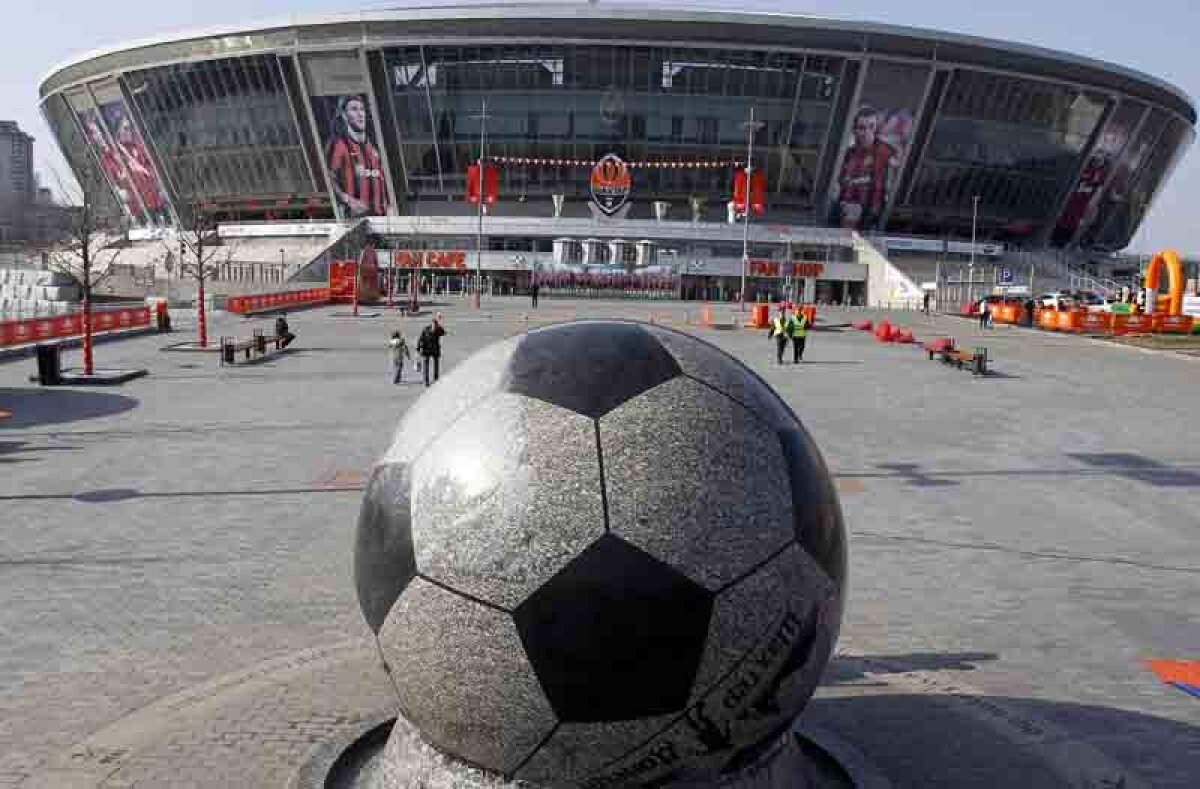 : Mingea din Granit din faţa arenei Donbass din Doneţk
