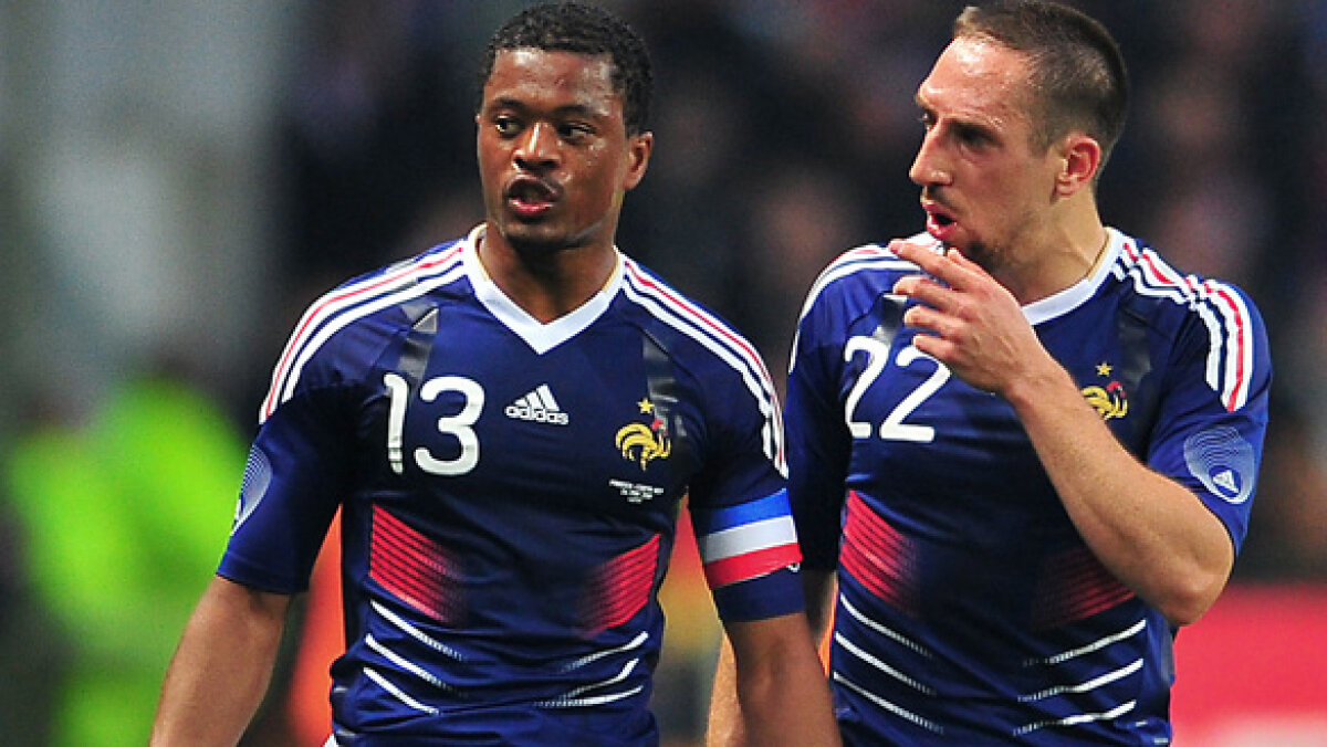 Ribery şi Evra au primit suspendări de trei, respectiv cinci meciuri din cauza eşecului Franţei la Cupa Mondială din Africa de Sud de anul trecut. De atunci, cei doi nu au mai jucat în tricoul albastru.