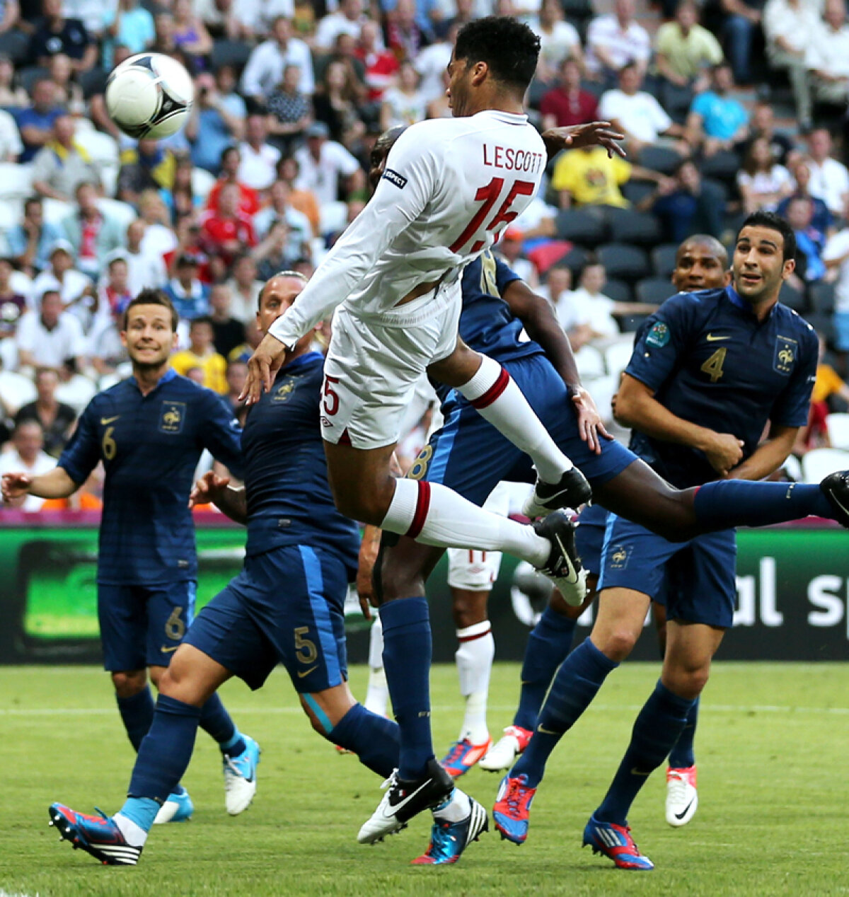 Mijlocaşul francez al lui Manchester City a restabilit egalitatea, 1-1, în minutul 39, printr-un şut cu dreptul de la circa 18 metri, plasat la colţul scurt. Golul lui Nasri a fost cel de-al 17-lea marcat la Euro 2012, primul înscris din afara careului mare. În schimb, reuşita cu capul prin care fundaşul central Lescott a deschis scorul pentru Anglia a fost a doua survenită din fază fixă, după golul irlandezului St. Leadger, la Croaţia - Irlanda 3-1. (Viorel Tudorache)