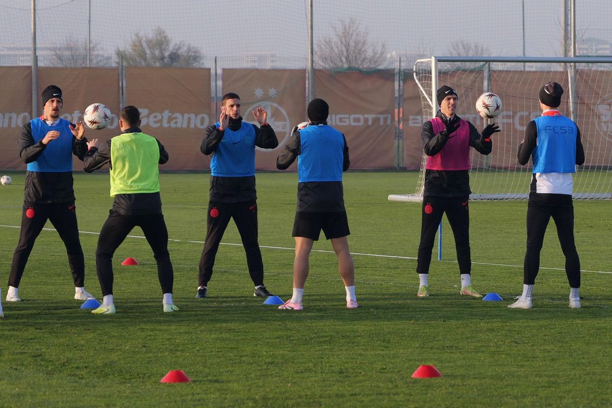 : Chiricheș, Cisotti, Tavi Popescu și Florin Tănase la antrenamentul oficial înainte de FCSB - Feyenoord // Foto: Andrei Furnigă (GSP)