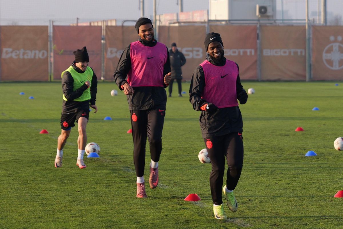 : Darius Olaru, Edjouma, Thiam la antrenamentul oficial înainte de FCSB - Feyenoord // Foto: Andrei Furnigă (GSP)